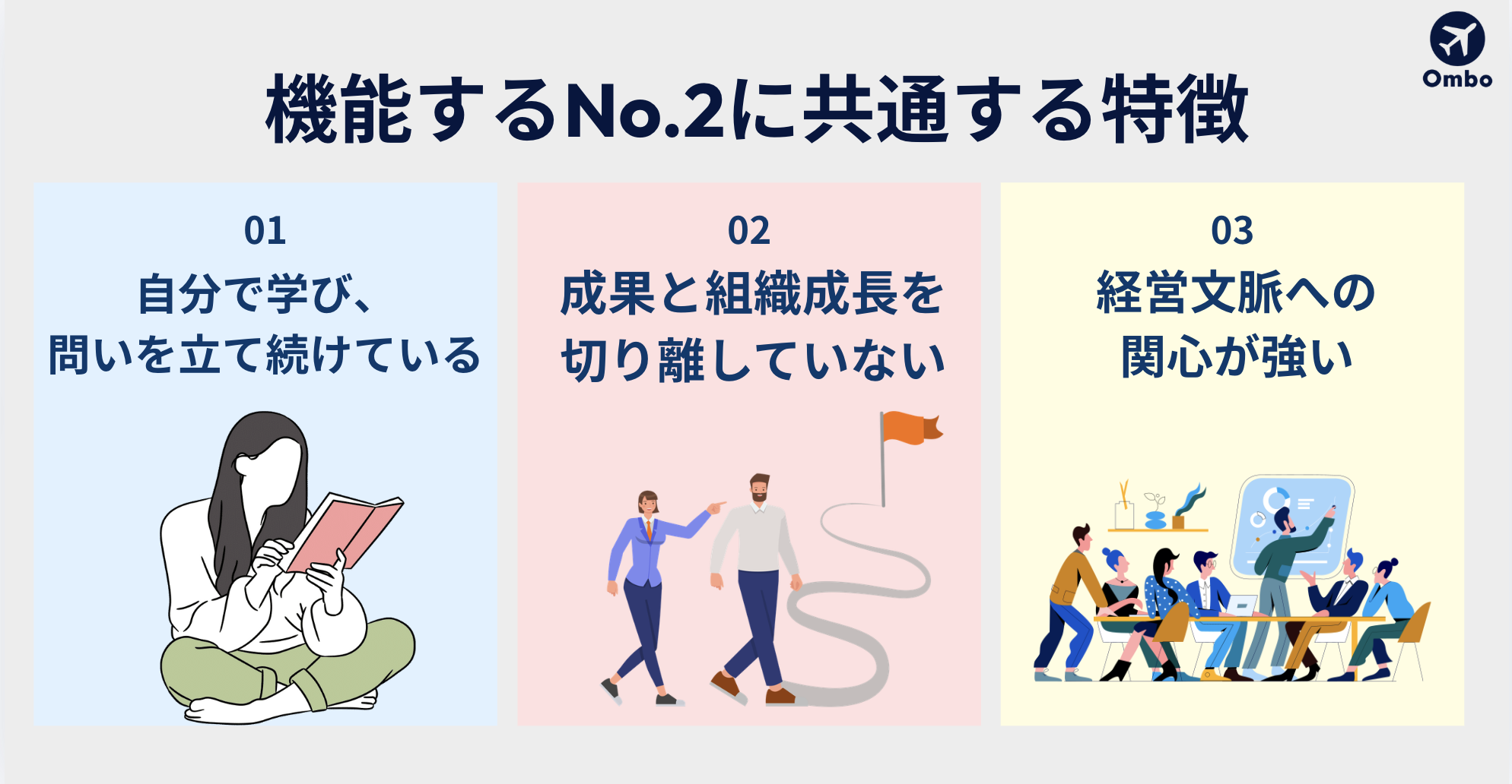 個人の成功で終わらせず、組織の力に変えようとする視点を持っているかどうか。ここが、プレイヤーとして優秀な人と、No.2として機能する人の分かれ目です。