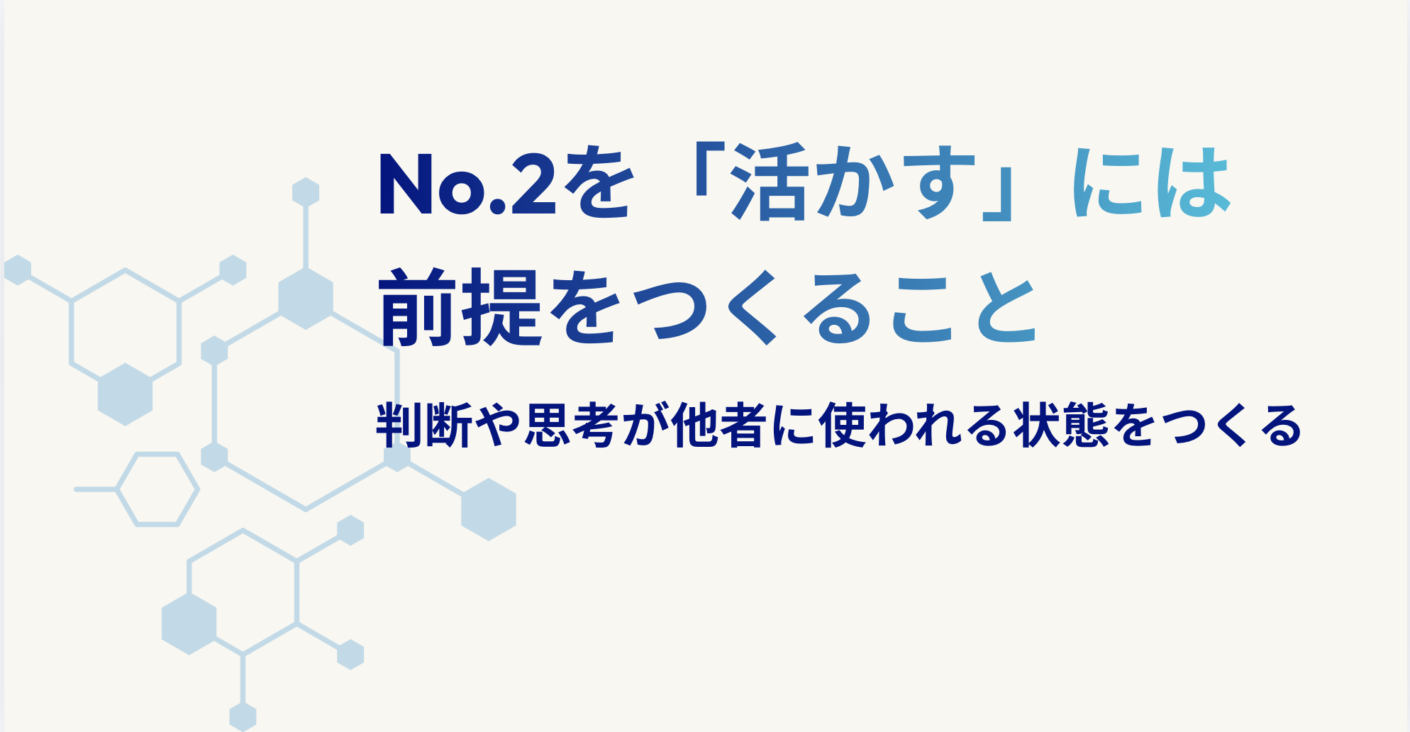 経営者に求められるのは、No.2を動かすことではなく、No.2の判断が他者に使われる状態をつくることです。