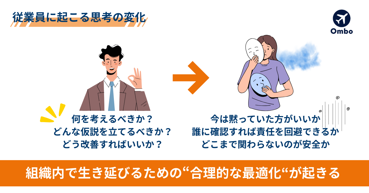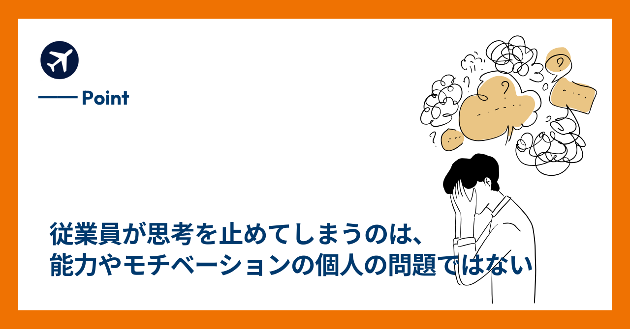 組織の中で社員やメンバーの思考が止まるとき、それは多くの場合、環境に対して合理的に適応した結果として起きています。
