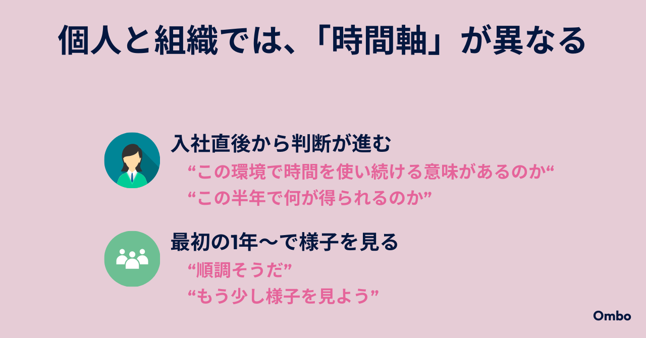 多くの企業では、新卒に対して「まずは1年」「最初の1年で様子を見る」という時間感覚を持っています。これは育成の観点では自然な前提です。