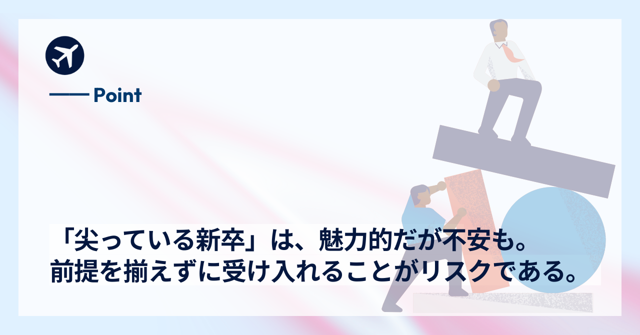 尖っている新卒は、組織にとってリスクではありません。前提が揃わないまま迎え入れてしまうことが、リスクなのです。