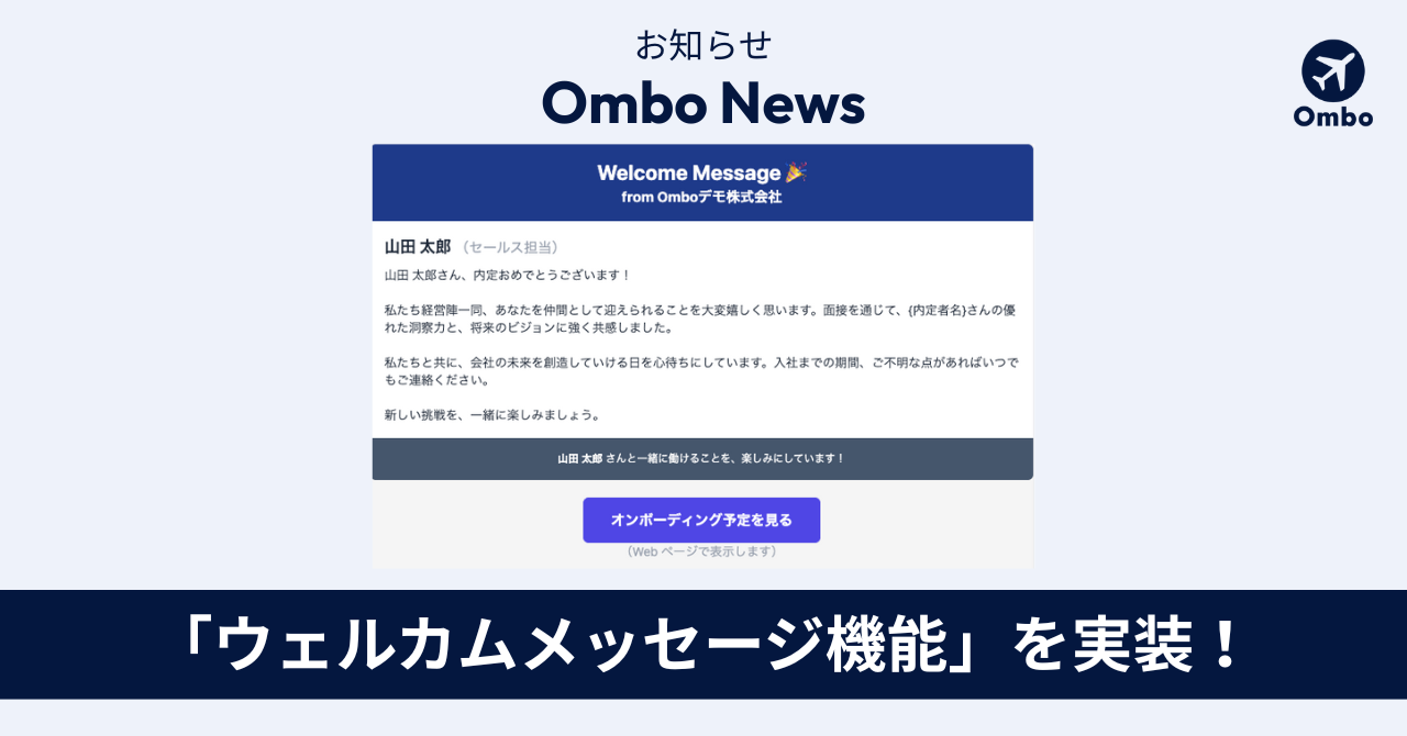 お知らせ① Omboに「ウェルカムメッセージ機能」が追加!